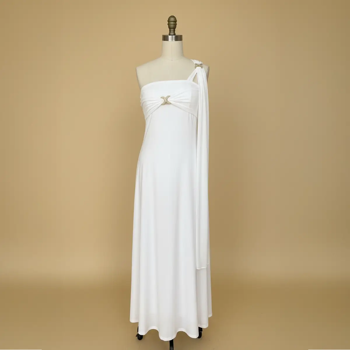 Vestido estraple, en stretch detalles marino, delicada bufanda en velo, largo.
